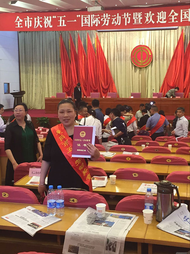 安徽豹子頭服飾公司公司職工張利獲得阜陽市五一勞模榮譽